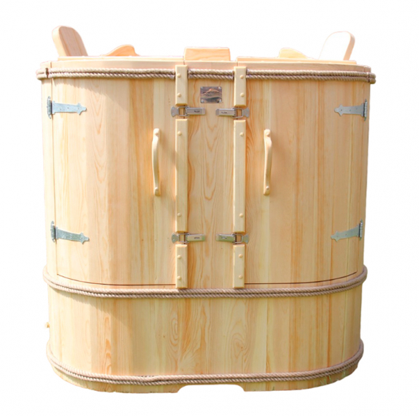 Готовый комплект - это полностью укомплектованный набор с полулежачей фитобочкой для процедур парения. Такая модель наиболее комфортна, так как позволяет принимать процедуры полулежа. Толщина стенок составляет 40-45 мм, что позволяет увеличить срок службы изделия. Фитобочка оборудована откидными створками, дверцей и отверстием для головы. Во время парения человек находится внутри кедровой бочки, а голова снаружи. Благодаря этому исключается возможность перегрева